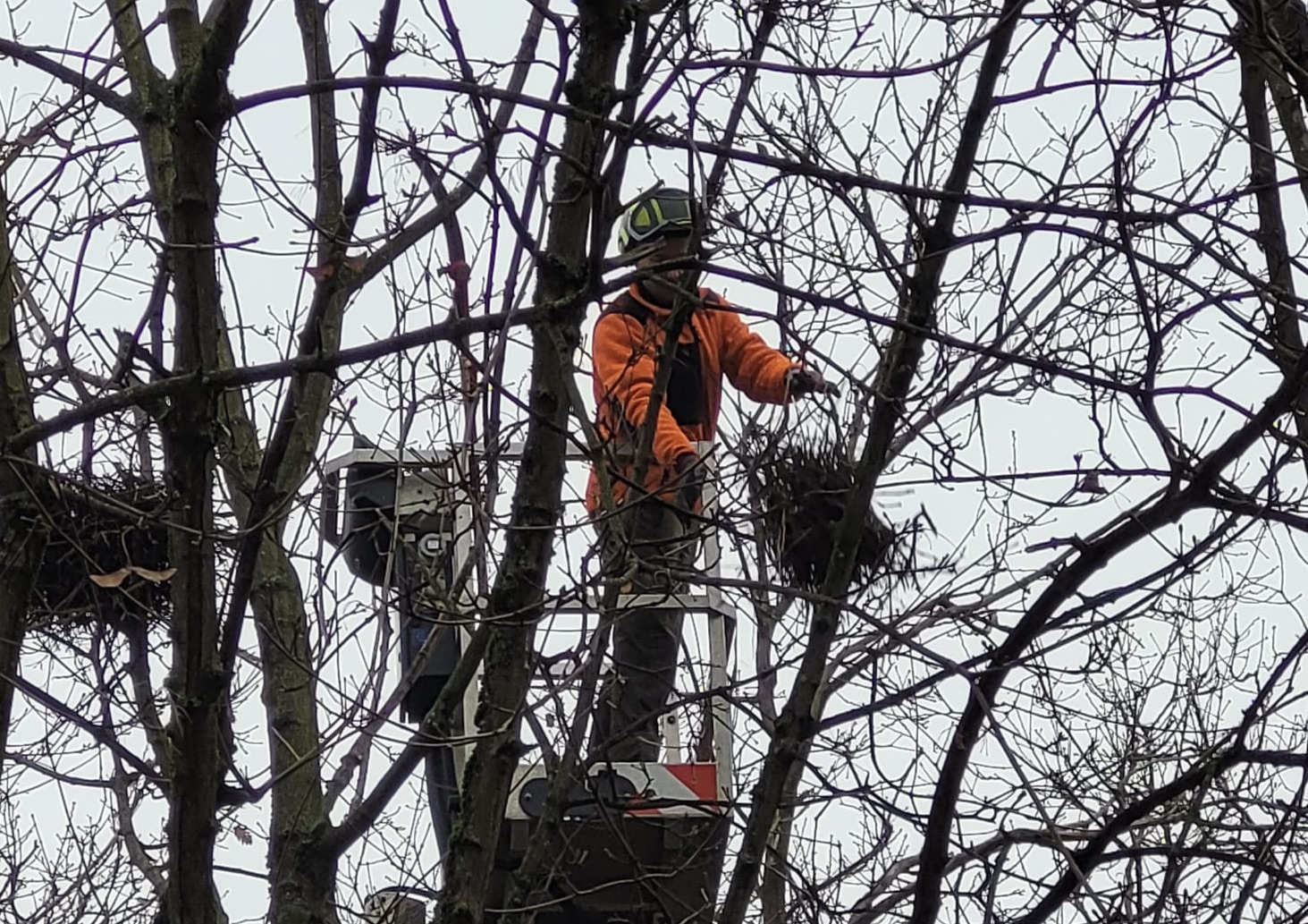 Und gleich darauf war es soweit: am 20. Januar rückte ein Fahrzeug mit Hubsteiger an und entfernte zahlreiche Nester. Die Belastung sollte damit geringer werden.